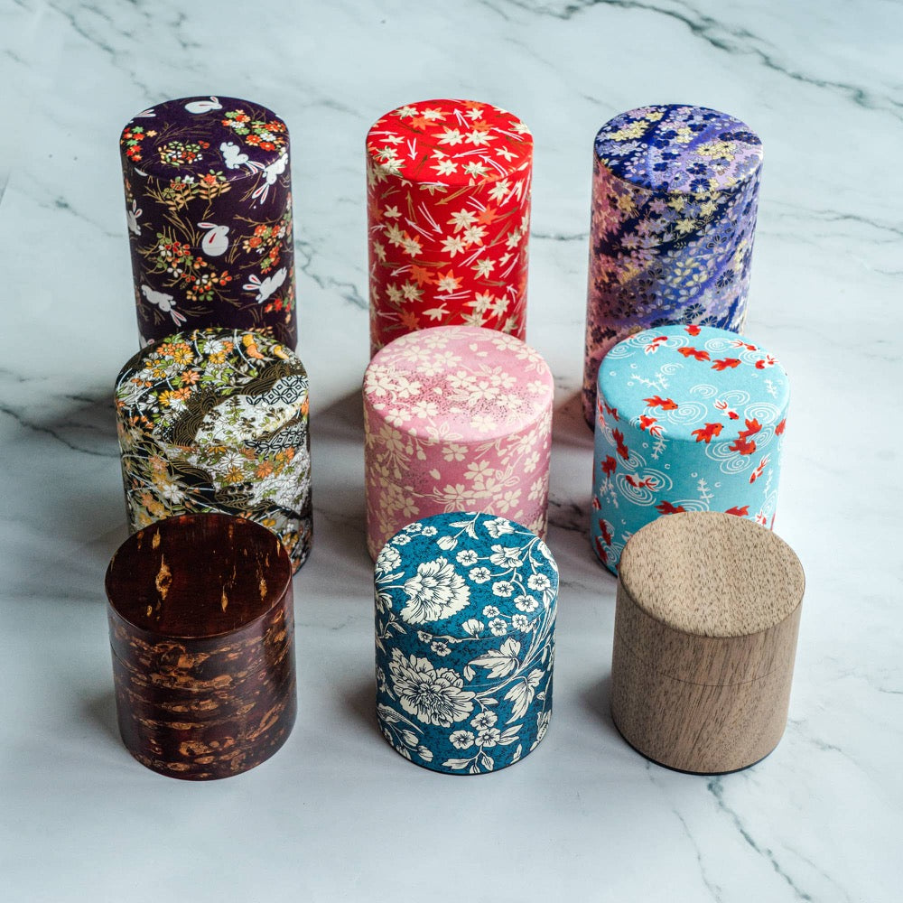 Mt. Fuji Red Floral Clouds Washi Tea Canister - 100g