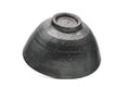 Sugawara KengoThis striking chawan (matcha bowl) is entirely glazed in an iron-rich glaze, producing a unique matte black, almost metallic and shiny finish. Made in the classic Ido form, the bowl has an open shape and stylish bamboo-node foot (竹の節高台 - takenofushi koudai).