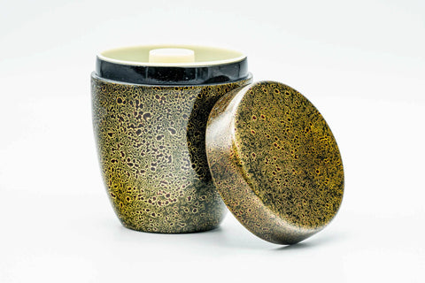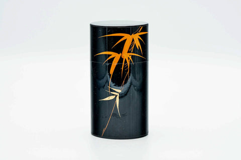 Japanese Chazutsu - Black Orange Leaves Weathered Metal Tea Canister - 450ml