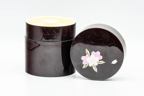 Japanese Natsume - Chrysanthemum Floral Black Lacquer Matcha Tea Caddy - 100ml