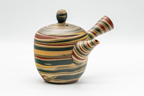 Japanese Kyusu - 雲仙窯 Unzen Kiln - Red Green Nerikomi Tokoname-yaki Teapot - 260ml