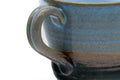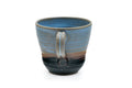 AsahiyakiThis elegant mug is thrown from a textured Uji stoneware, draped in two glazes. The top is Asahiyaki's signature geppaku glaze, a rice straw ash glaze that fires into a milky blue. The bottom is an iron black glaze carefully applied to leave a small gap of bare clay, showing off the raw colour of the clay. The high temperatures of their climbing kiln bring out the rich colours of these two glazes which exhibit a range of hues as the glazes thins and pools across the mug's surface.