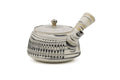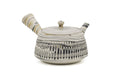 Tōsen KilnThis stunning marbled Tokoname-yaki kyusu (teapot) has a trapezoidal shape, and is made from white, black, and ivory clay kneaded together in the nerikomi (練り込み) technique. The cuts made to create this pot's faceted shape reveal even more layers and patterns of marbling.