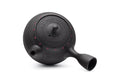 This maru-gata Tokoname-yaki kyusu (teapot) is made from Tokoname kokudei (黒泥) clay, which has the same properties as the iconic red shudei (朱泥) but is fired in reduction, producing a deep black. The pot's round shape and generous size make it the perfect all-round kyusu, ideal for both solo and group tea sessions.