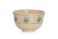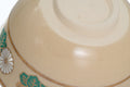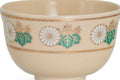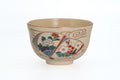 This Oribe chawan (matcha bowl) is glazed in a finely crazed light cream, decorated with an iron underpainting of a snow-capped Mount Fuji and accented with splashes of the iconic copper green Oribe glaze. Unlike some traditional Oribe chawan which have distorted shapes, this bowl is perfectly round making it easy for beginners to use.