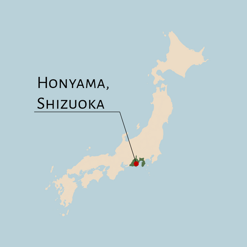 Of Shizuoka's many tea-growing regions, tea from Honyama is praised for its transparent and elegant taste, deriving from the mineral rich soil and the subtle, natural shade of fog and mountains. Tea grown on the slopes that border the Abe and Warashina Rivers, which flow through Shizuoka, is said to be Honyama tea. Along with the neighbouring region of Kawane, Honyama tea is often grown at a higher elevation than most other Japanese teas.