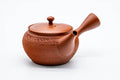 GyokkoThis tea set includes an expertly crafted Tokoname-yaki kyusu (teapot) and five Mino-yaki yunomi (teacups). The teapot is made from the iconic Tokoname shudei (朱泥) clay, known for its brilliant red colour and ability to subtly reduce the astringency of tea. The body is decorated with a detailed pine bark textured that contrasts with the smooth spout and handle. Made using a small wheel, this texturing technique is called matsugawa (松皮 - pine bark) in Japanese.