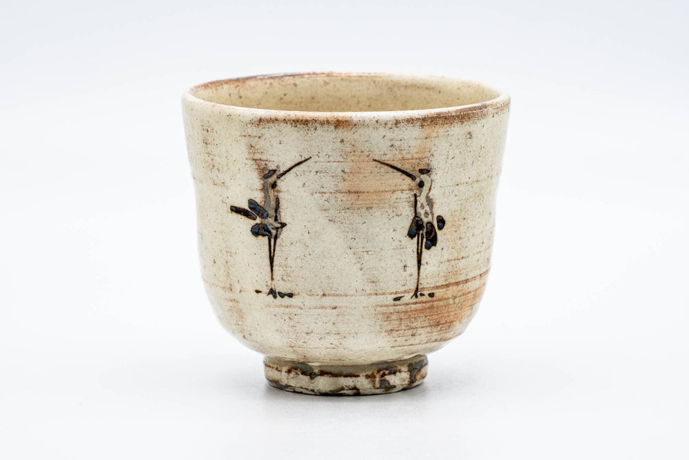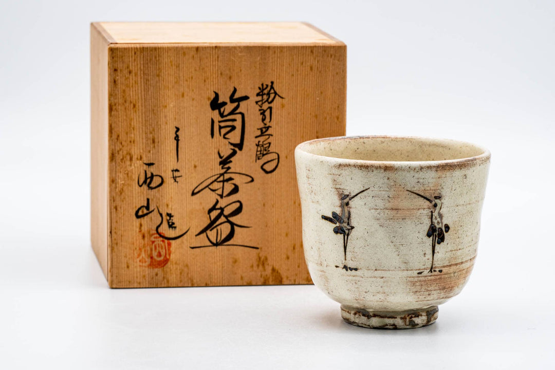 Japanese Matcha Bowl - 平安西山 Heian Nishiyama - 西山窯 Nishiyama Kiln - Kohiki Glazed Cranes Kiyomizu-yaki Chawan - 250ml