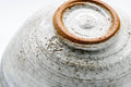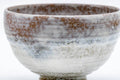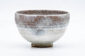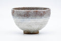 This Kyo-yaki chawan is glazed in a variant of the kohiki (粉引) style, using a spattering of white slip over the coarse orange clay body to create a striking effect.