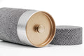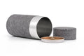 KotodoThis tall chazutsu (tea canister) is made from tin-plated steel and wrapped with black washi paper decorated with white dots.