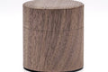 This chazutsu (tea canister) is made from tin-plated steel and wrapped with natural brown walnut wood.