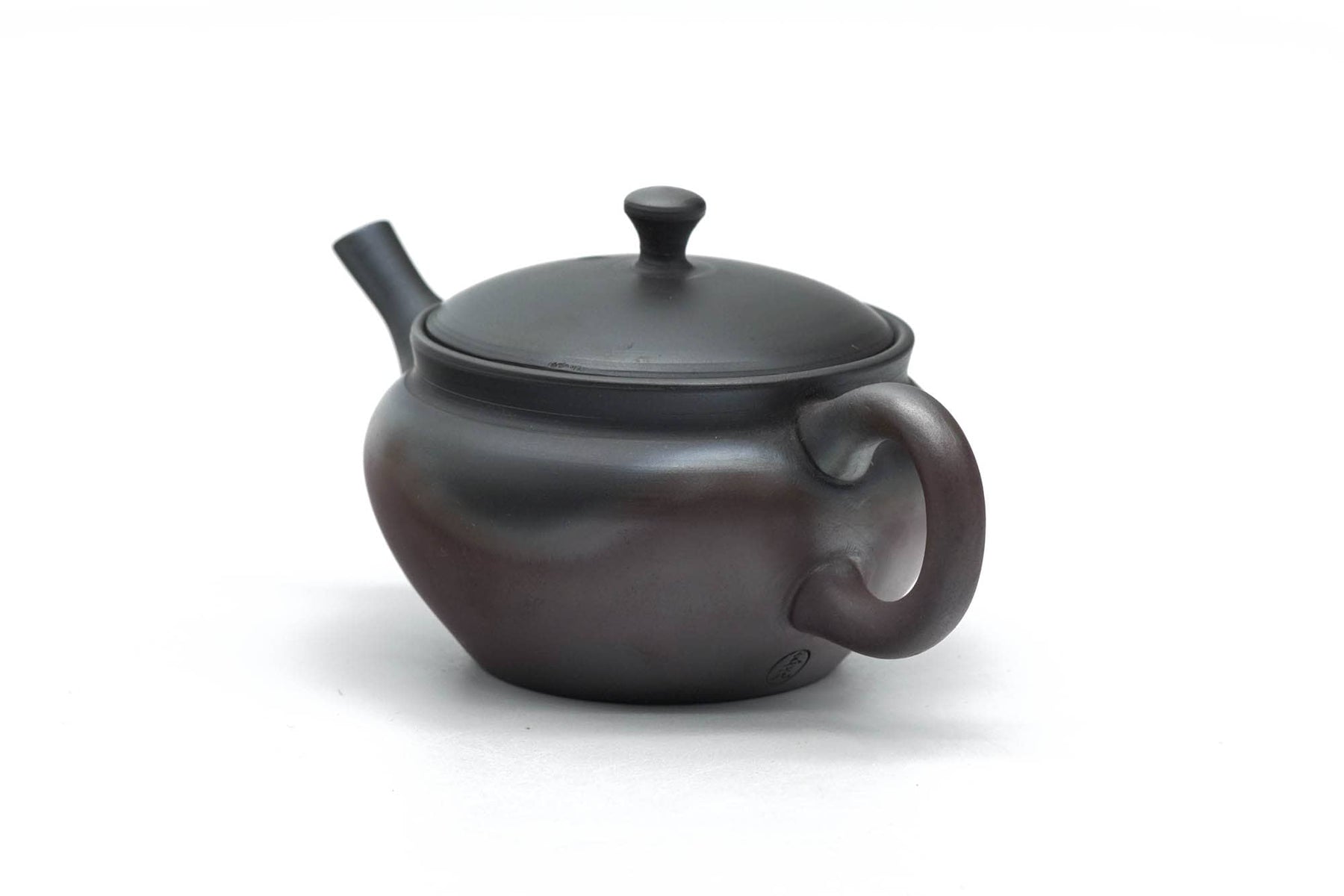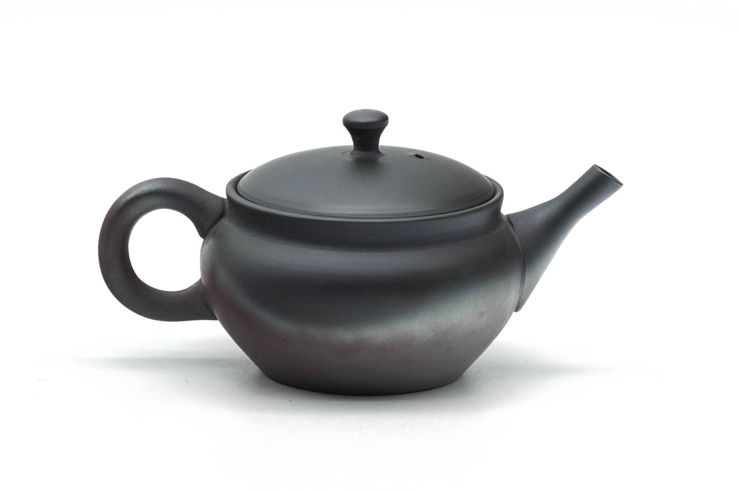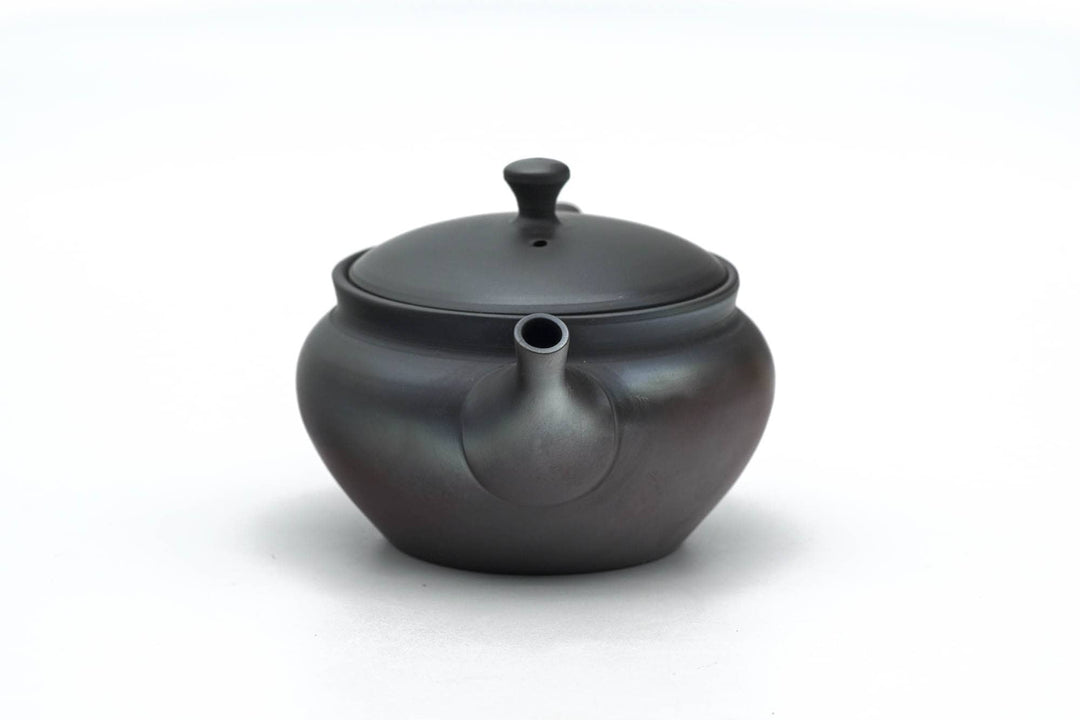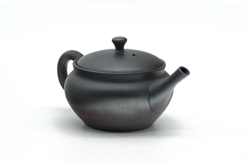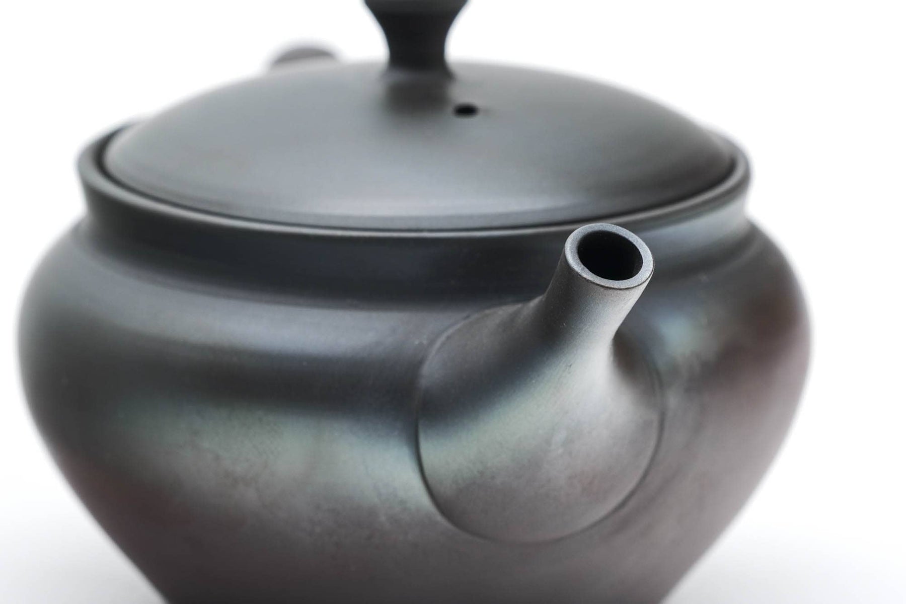 GyokkoThis expertly crafted Tokoname-yaki kyusu (teapot) is made in a rear-handled design, similar to Chinese and Western teapots. It is thrown from the iconic Tokoname kokudei (黒泥) clay, which has the same properties as the iconic red shudei (朱泥) but is fired in reduction producing a deep black. Yōhen (窯変), which means "changed by the kiln", refers to the attractive gradient from bronze/brown to black across the pot caused by specific firing conditions.