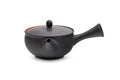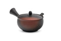 Iwase KōjiThis expertly crafted Tokoname-yaki kyusu (teapot) has a sleek and modern design and is made from the iconic Tokoname shudei (朱泥) clay, known for its brilliant red colour and ability to subtly reduce the astringency of tea. This pot has a striking yōhen (窯変) gradient from a rich red to a deep black. Its wide lid opening is perfect for viewing the tea leaves and makes for easy cleaning.