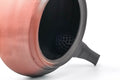 Yōhen is used to generally describe many kiln effects across various ceramics styles (including Tenmoku, where it is spelled 曜変). In Tokoname-ware, however, this term specifically refers to the attractive and often dramatic colour gradients and patches caused by certain firing conditions. One way this is achieved is by partially submerging the teapot in sawdust while firing. Yōhen pots typically have a gradient from a dark black or brown to shudei red, though some potters use this technique with ryokudei or koudei clays to produce unique colour patterns. As the exact pattern produced is highly dependent on the position of the piece in the kiln as well as the firing temperature, atmosphere, and fuel, producing a consistent result across many pieces takes a great amount of skill, patience, and practice.