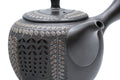 Made by Mano Shunen (間野舜園). Born in 1950, Shunen-san is the second generation to use the Shunen name and has become famous for his incredibly intricate, multi-layered carved kyusu, which take the traditional art of carved teapots to the next level. Unlike the traditional method, in which the potter and the engraver/carver are two seperate artists, Shunen's unique vision and attention to detail means he crafts the entire piece himself, from making the clay, to throwing the pot, assembling the pieces, and carving the designs. Another unique aspect of his kyusu are the downturned spouts which Shunen designed to improve the pouring experience.