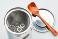Instead of the traditional bamboo spatula, there are three heavy metal washers that sift the matcha as you 'shake' the can in a horizontal circular motion, which make the process quicker and cleaner as this can be done with the lid on.