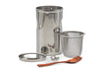 This extra large stainless steel matcha sifter is designed for sifting large quantities of matcha quickly for use in cafés and large tea events. It can sift about 80g of matcha at a time thanks to its deep sifter basket and can hold a total of about 150g.