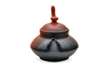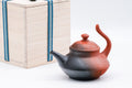 Yōhen is used to generally describe many kiln effects across various ceramics styles (including Tenmoku, where it is spelled 曜変). In Tokoname-ware, however, this term specifically refers to the attractive and often dramatic colour gradients and patches caused by certain firing conditions. One way this is achieved is by partially submerging the teapot in sawdust while firing. Yōhen pots typically have a gradient from a dark black or brown to shudei red, though some potters use this technique with ryokudei or koudei clays to produce unique colour patterns. As the exact pattern produced is highly dependent on the position of the piece in the kiln as well as the firing temperature, atmosphere, and fuel, producing a consistent result across many pieces takes a great amount of skill, patience, and practice.