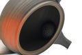 Yōhen is used to generally describe many kiln effects across various ceramics styles (including Tenmoku, where it is spelled 曜変). In Tokoname-ware, however, this term specifically refers to the attractive and often dramatic colour gradients and patches caused by certain firing conditions. One way this is achieved is by partially submerging the teapot in sawdust while firing. Yōhen pots typically have a gradient from a dark black or brown to shudei red, though some potters use this technique with ryokudei or koudei clays to produce unique colour patterns. As the exact pattern produced is highly dependent on the position of the piece in the kiln as well as the firing temperature, atmosphere, and fuel, producing a consistent result across many pieces takes a great amount of skill, patience, and practice.