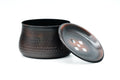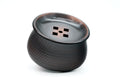 This vintage kensui (waste water bowl for tea ceremony) is made entirely from metal and features a patterned lid