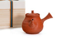 Murakoshi FugetsuThis expertly crafted Tokoname-yaki kyusu (teapot) has a nasu-gata (eggplant) shape, and is made from hon-shudei (本朱泥) clay, the original unblended version of the iconic Tokoname shudei (朱泥) clay, known for its brick-red colour and ability to subtly reduce the astringency of tea. Compared to the modern blended varieties, hon-shudei has a softer colour and coarser texture.