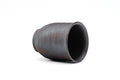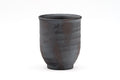 This tall yunomi (teacup) is made from an unglazed warm grey stoneware with patches of warmer orange showcasing the flames of the kiln.