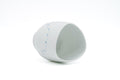 This unique Arita-yaki yunomi (teacup) is made from porcelain in a triangular shape, and decorated with wavy blue medaka fish motif. Ships with its original kiribako (桐箱 - wooden paulownia box).