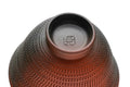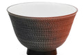 GyokkoThis set of five Tokoname-yaki kumidashi yunomi (small tea pots) is made from kokudei (黒泥) clay, which has the same properties as the iconic red shudei (朱泥) but is fired in reduction producing a deep black. This pot has a striking yōhen (窯変) gradient from a rich red to a deep black. The outside of cups are decorated with a pattern called 'tochiri' or 'biri', made using a razor blade, while the inside is glazed a pure white, which showcases the colour of the tea.