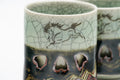 The most distinctive features of Obori-soma ware are its celadon glazes which feature large crazing patterns, hand-painted horse motifs, and double-walled construction. This double-walled technique provides insulation, keeping liquids hot and your hands cool, and is unique to Obori Soma-yaki.