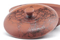 This exquisitely crafted Tokoname-yaki shiboridashi (handleless teapot) is made from the iconic Tokoname shudei (朱泥) clay, decorated with an intricate web of fine mogake (藻掛 - seaweed wrapping) patterns. As the name suggests, this traditional Tokoname technique that dates back to the Edo period is achieved by wrapping each piece with amamo seaweed before firing. In the kiln, the seaweed burns off, leaving its carbonised silhouette draped across pot.