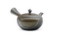 Sawada TomohiroThis exquisitely crafted Tokoname-yaki kyusu (teapot) is made from a dark grey clay, partially decorated with a shiny brown-green ash glaze.