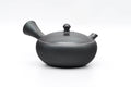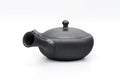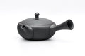 This exquisitely crafted Tokoname-yaki kyusu (teapot) is made from a dark grey clay with a super thin layer of an original glaze developed by Tomohiro that gives the pot a unique black-brown metallic sheen.