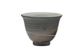 Sawada TomohiroThis sleek Tokoname yunomi (teacup) is made from a dark grey clay and has a classic tulip shape with a subtly everted lip. The surface of the clay is left unpolished, giving it a matte finish and slightly textured feel. The cup is decorated with a thin white line of glaze that spirals around the cup and stops at the foot. Inside, the cup sports a light coloured glaze which shows off the colour of the tea.