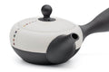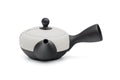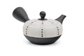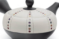 Shōhō KilnThis hira-maru Tokoname-yaki kyusu (teapot) is made from Tokoname kokudei (黒泥) clay and features a white glaze on the body, decorated with multicoloured pearlescent dots.