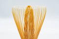 The kazuho (数穂) shape is the most basic style of chasen. Compared to the shin/shin kazuho (真・真数穂) it has straighter tines that are tightly curled at the tip. Like the shin, the kazuho has roughly 64 tines, and sits in between dedicated usucha chasen which have lots of thin tines, and dedicated koicha chasen, which have fewer but thicker tines. This makes kazuho-type chasen suitable both for whipping up a fine, foamy usucha and kneading a thick, rich koicha.