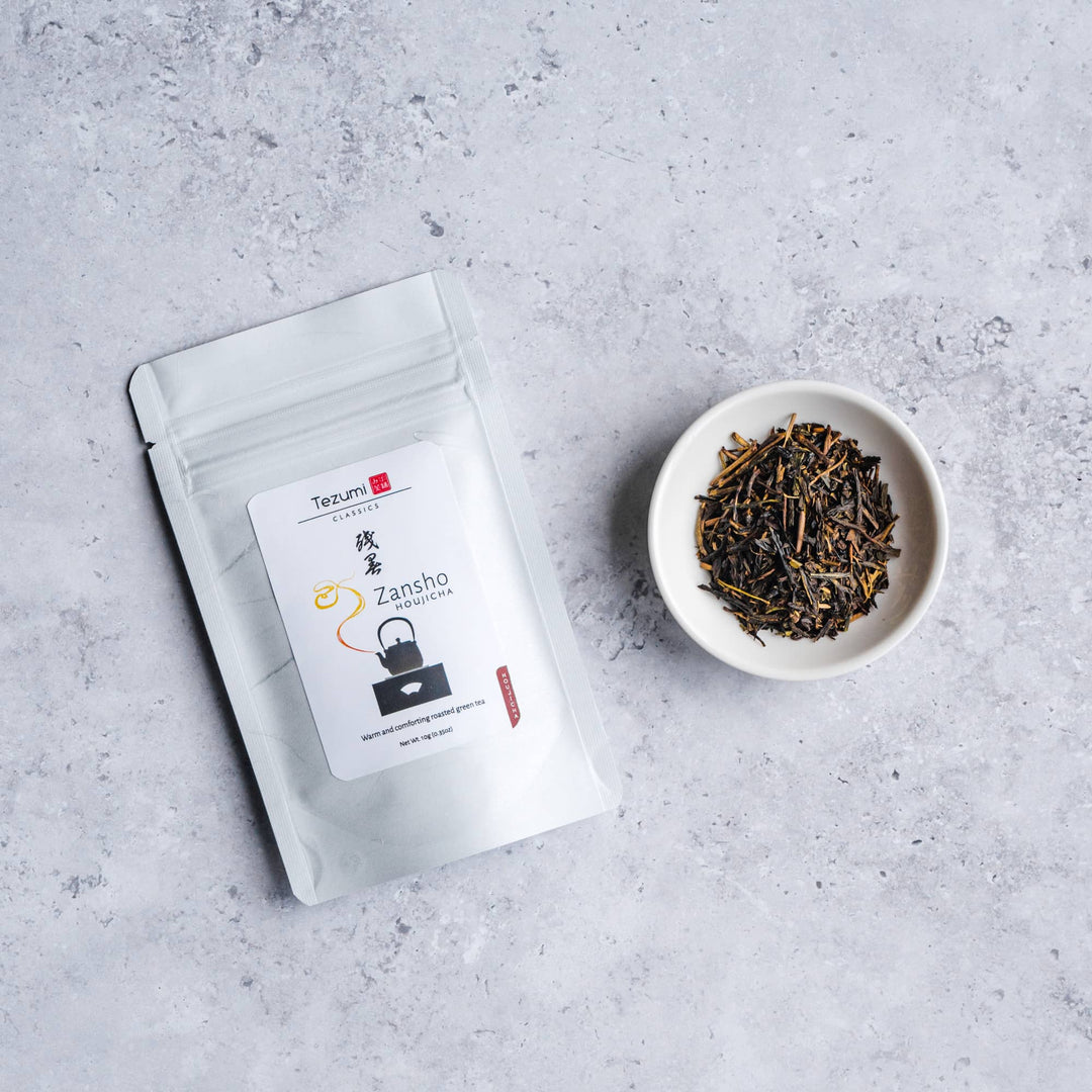 Unlike most houjicha which is made from lower-quality bancha, Zansho is made by roasting first flush sencha leaves and stems, resulting in a deep, full-bodied tea. The leaves give Zansho its punch and body with the stems providing a touch of sweetness.