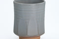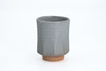 This simple and elegant yunomi (teacup) has a classic cylindrical shape accented with a mentori (面取り) or faceted design. The iron-rich Hagi mishima (三島) clay is hand-thrown on a kick wheel, covered in an ash and slip glaze, and fired in a climbing kiln in an oxidative atmosphere, producing a beautiful effect with fine crazing, and shades of grey, blue, and pink within the glaze.