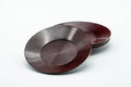 This set of four red burgundy plastic chataku (tea saucers) feature a spiraling mould and slightly elevated rim.