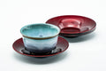 This set of four black lacquered chataku (tea saucers) feature a beautifully shiny scarlet red surface and an elevated rim.