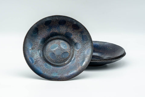 Japanese Chataku - Set of 5 上彬 Blue Spotted Hammered Tea Saucers