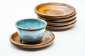 This set of five wooden chataku (tea saucers) have a thick yet lightweight body, an elevated rim and a smooth light brown wood finish.