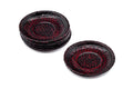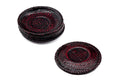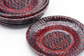 This set of five vintage red-black chataku (茶托 - tea saucers) are made from woven bamboo and coated with lacquer.