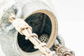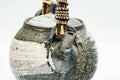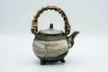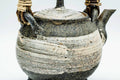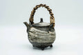 This large dobin (top-handled teapot) features a white hakeme brush stroke glaze over textured clay. Its built-in ceramic debeso filter is perfect for naturally straining tea.