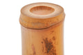 This vintage bamboo futaoki (lid rest) is shaped for furo use, and is made entirely from Japanese bamboo. Bamboo futaoki for the furo (風炉) season tend to be narrower than those for ro and have the node closer to the top of the piece.