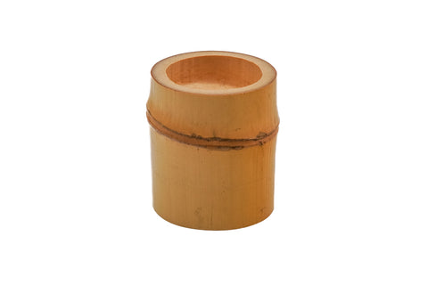 A futaoki (蓋置 - lid rest) is a small stand used to hold the lid of the kama or for resting the hishaku on. They are typically made of bamboo, ceramic, or metal, and come in a vast array of shapes and styles. While metal and ceramic futaoki can be quite ornate and are considered more formal, the common and basic bamboo types are largely undecorated and are the least formal style.
