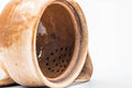 This Hagi-yaki houhin (handleless-teapot) features a beautiful loquat-coloured (枇杷色 - Biwa-iro) glaze. Like most houhin, it has a wide, triangular open spout which allows for fast pouring, a simple ceramic do-ake filter which lends no metallic taste to the tea, and a wide opening which allows for easy viewing of the tea leaves and easy cleaning.