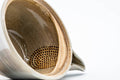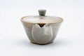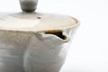 This Asahi-yaki (朝日焼) houhin (handle-less teapot) is made from porcelain and decorated with a smooth grey glaze. Its built-in ceramic do-ake filter is perfect for naturally straining tea.