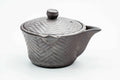 This weathered Banko-yaki houhin (hohin; handle-less teapot) features a patterned clay design with wings that make it easier to grip. Its mesh strainer is perfect for brewing even the most deeply-steamed fukamushi senchas.