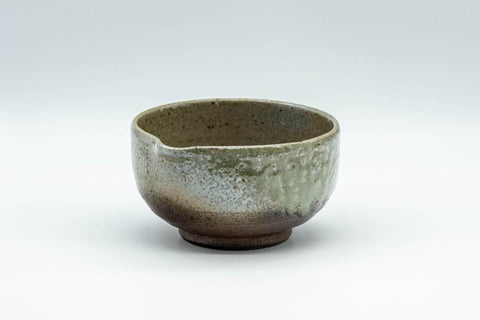 This Shigaraki-yaki handleless yuzamashi (water cooler, also called a katakuchi) features a green 'gome' style (sesame seed) ash glazes over the rustic stoneware that Shigaraki ware is known for.