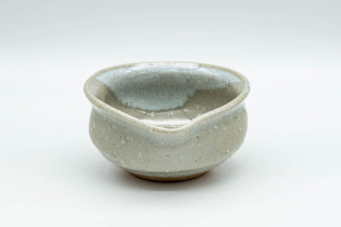 This Hagi-yaki handleless yuzamashi (water cooler; also called a katakuchi) features warm, beige and white glazing.